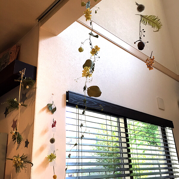 自然そのままの色合いを大切に、インテリアのアクセントになる素敵なガーランドができました。