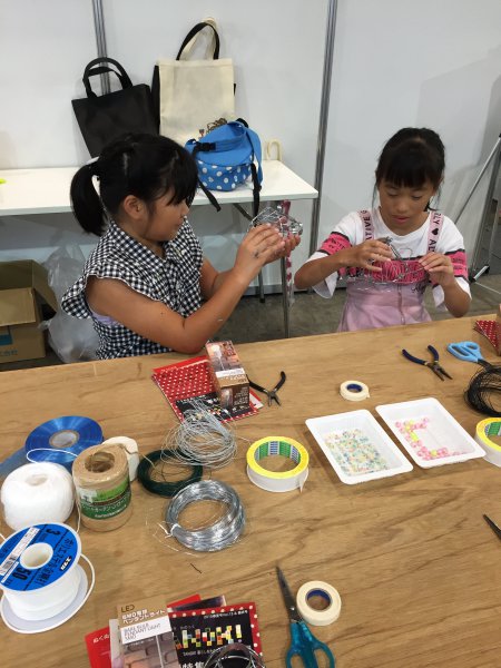 その他、ワイヤーシェードに様々な紐を使って仕上げるワークショ