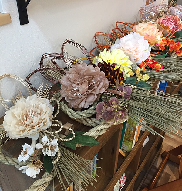 ご自宅の玄関にあわせてお好みの花や水引を選んで作ることができました。