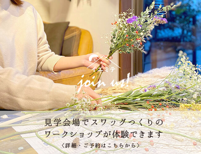 会場ではスワッグ作りのワークショップを体験できます♪