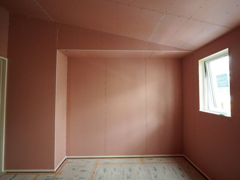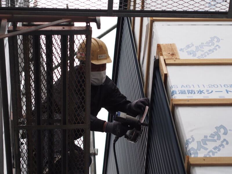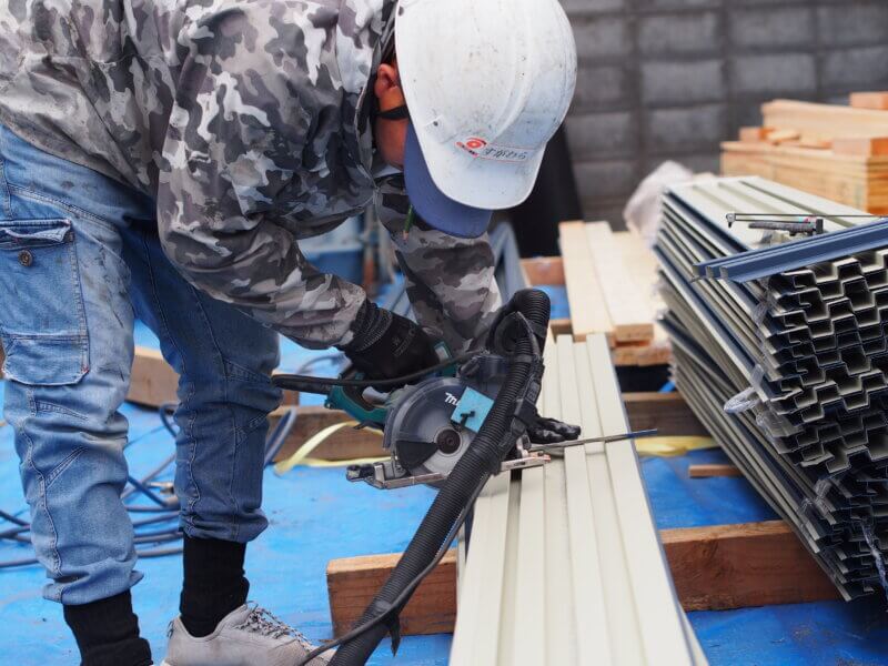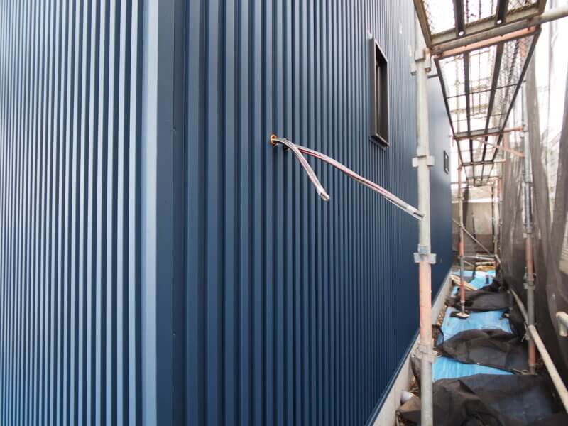 こんにちは*先日のウッドファイバーが詰まった天井はプラスターボードで閉じられ…壁と床の境目に巾木も取り付けられだんだんと部屋らしくなってきました!↑カットされる前の巾木。巾木には壁と床の境目をキレイに見せて壁を衝撃から守る役割も。そして屋外では外壁で使用するガルバリウム鋼板のカットと取り付けも行われていました。取り付ける屋根の角度にあわせてカットし…取り付けていきます。ネイビーの縦スリットがスッキリシャープな印象!まだ全面にはついていませんが、外観も少しずつ出来上がってきています♪・▼沼津スタッフのモデルハウスレポート▼・沼津支店より程近い大岡会場で今週末見学会が開催されます!こちらもご確認ください♪4/3(土)4(日)沼津市大岡 31坪黒ガルバの家 予約制見学会>>
