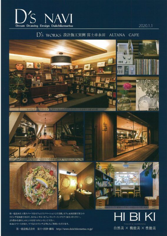 皆さんこんにちは毎月第一建設ではD'sNAVIという新築やリフォームの施工例を紹介しています。1月のD'sNAVIは、 ALTANA CAFE!第一建設本社1階スペースをカフェにリノベーションした空間。カフェ&図書館で第2のリビングを体感できます。本のレンタル・カフェ・ランチ・インテリア・家具・ギャラリー。より豊かな暮らしのヒントを見つけにいらしてください。kidsスペースがありるので、ママ友とのランチ会等にもご利用いただけますよALTANA CAFE他にも施工実例ご紹介しています。↓Click!HIBIKI Works Gallery第一建設株式会社沼津支店・富士吉田支店住宅部統括責任者 黒田 貴宏