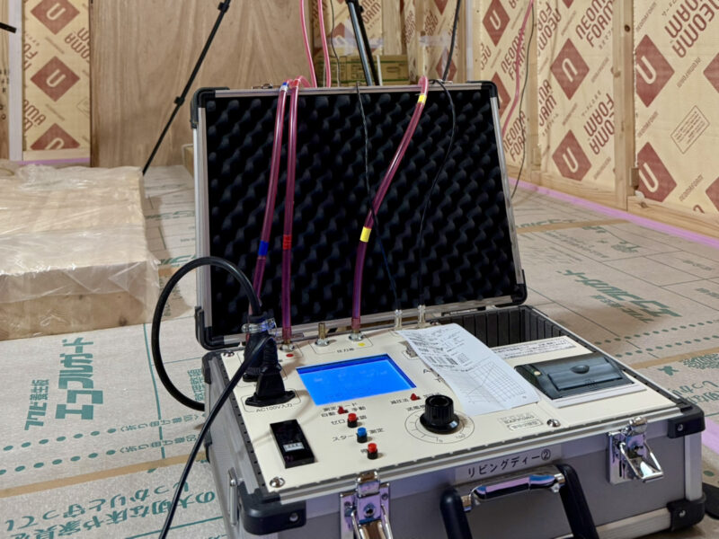 大工さんの工事が進む友人の家。気密性能も大切に現場では1回目の気密測定を実施しました。そう!リビングディーの建物は気密施工だけでなく測定までが標準仕様。しかも!!!工事中と完成時、合計2回の測定を実施しています。ちなみに今回の測定結果は・・・C値:0.2㎠/㎡工事中とは言え、なかなか良い数字。カタログ上、図面上だけでなく実際の工事現場、職人さんの技術力これらすべてが高い品質で保たれています。友人よ、リビングディーで良かったね。 沼津支店 大石