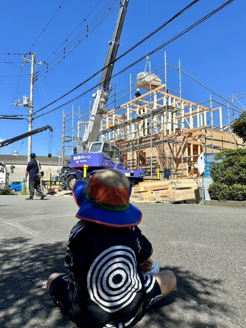 建築現場は2歳の息子にもとっても興味深いらしく、