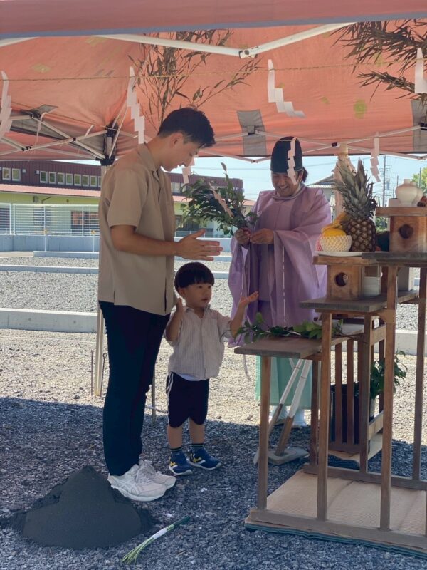先日、地鎮祭を行いました。天気も良く、無事に地鎮祭を行うことができました。お施主様からコメントをいただいております。-------------------------この度は、地鎮祭にあたりご準備から当日まで多忙なお力を添えていただき、ありがとうございました。無事に式を終えることができ、いよいよ新居づくりが始まるのだと実感し、棟が高鳴っております。これからもどうぞよろしくお願いいたします。-------------------------お子さんも一緒に玉串拝礼に参加しれくれました!S様地鎮祭おめでとうございます!引き続きよろしくお願いいたします😊