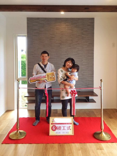 竣工式おめでとうございます!お客様よりメッセージをいただきました♬ 本日は素敵な竣工式をありがとうございました。自分たちの家を持ちたいと思ってから今日まであっという間だった気がします。スタッフの方々に導かれ、支えられ、そして時には癒されながら楽しく家づくりを進めることができました。ありがとうございました。これから居心地のいい家に住むのが楽しみです。 K様ありがとうございます。