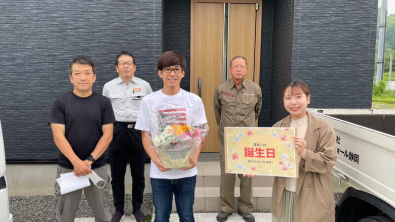 お引渡しから1年。H様住まいの誕生日おめでとうございます💐♪お施主様よりコメントをいただきました*********いつもお世話になっております。1年点検ありがとうございました。この一年間暑すぎず、寒すぎず快適に過ごす事が出来ました。これからもよろしくお願いします。*********H様 ありがとうございます♪