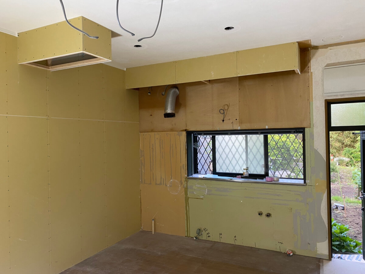 こんにちは。リフォーム・リノベスタッフ山本です。 ダイニングキッチンのリフォームをされているお宅は、電気屋さんの工事に入り、照明やコンセントの配線工事 キッチン部分の電源取出しを行いました。 大工さんもボード張りを行い、今はこのような感じに。 来週は、床張り工事やクロス工事に入りお部屋の雰囲気が分かりやすくなります!変化の様子をブログでご紹介しますね。 < 予約制完成見学会のおしらせ > 音楽、ハンドメイド、裁縫、お料理多彩な趣味をお持ちのご家族のお家と暮らしを垣間見れるチャンスです!6月12日(日) 富士市厚原 『音楽好き一家の趣味を楽しむリノベーションハウス完成見学会』 6月19日(日)『 リノベーションゼミ 』 富士市 第一建設本社 リフォーム・リノベーションで理想の暮らしを叶えてみませんか。リフォーム・リノベ施工事例はこちら >>>リフォーム・リノベblogはこちら >>> LIXILメンバーズコンテスト2021 新築部門 敢闘賞いただきましたLIXILメンバーズコンテスト2019 リフォーム部門 敢闘賞いただきました 2022年4月20日\ 第一建設は今年50周年を迎えました / 「新しいミライのカタチを創造しよう!」未来の社会と会社を見据え高付加価値の住まいとサービスを創造提供し持続循環するロングライフデザインのサステナブル企業としてお客様の幸せと快適な 暮らしに貢献します。コンセプトHIBIKIはこちら >>> Pickup!完成見学会やイベント、ワークショップの開催がたくさんあります。ぜひ楽しみにいらしてください。Pickup! イベント・見学会はこちら >>>