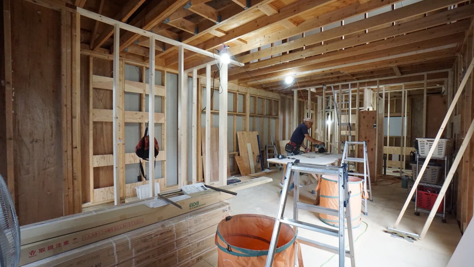 こんばんは。リフォーム・リノベスタッフ山本です。 今日は突然雨が降ったりして、気持ちの良い風が吹いて過ごしやすいお天気でしたね。 さて、ブログでご紹介している着工中の現場の進捗です。 もともと店舗だった1階部分をLDKにリノベーションしています。 大工さんが間仕切り壁を組んで、ミラーや飾りの下地を入れたり、床下地を施工しているところです。 現場に行くたびに、リビング入口からの眺め、キッチンからの眺めなど、いろんな方向からお家の中を見ています。 来週は、電気工事も始まります。少しずつ形になっていく様子を、こちらのブログでもお伝えしていきます。よろしくお願いいたします。 < 予約制完成見学会のおしらせ > 音楽、ハンドメイド、裁縫、お料理多彩な趣味をお持ちのご家族のお家と暮らしを垣間見れるチャンスです! 6月12日(日) 富士市厚原 『音楽好き一家の趣味を楽しむリノベーションハウス完成見学会6月19日(日)『 リノベーションゼミ 』 富士市 第一建設本社 リフォーム・リノベーションで理想の暮らしを叶えてみませんか。リフォーム・リノベ施工事例はこちら >>>リフォーム・リノベblogはこちら >>> LIXILメンバーズコンテスト2021 新築部門 敢闘賞いただきましたLIXILメンバーズコンテスト2019 リフォーム部門 敢闘賞いただきました