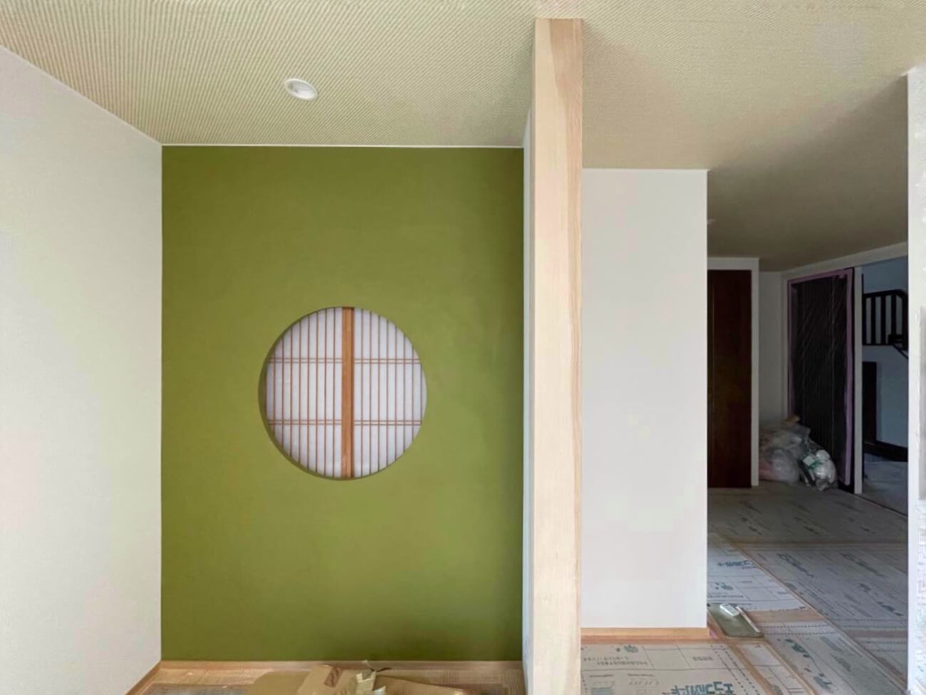 こんにちは。スタッフ山本です。 自宅の庭の紅葉もそろそろ終盤かな。 ご近所さんから、今年も楽しませてもらったよ~と嬉しい言葉をいただきました。 今朝の紅葉 断熱リフォームのお家は、見せ場になる丸くくり抜かれた開口部面に、苔色の塗り壁を施しました。 丸開口+障子。これは、今までお住まいになられていた和室にあったデザインを再現しています。 お施主様のお気に入りのデザインと家族の暮らしの思い出を取りこむような思いで、 新しいお家にもこのデザインを再現したらどうでしょう?とご提案させていただきました。 < Before写真 > 以前は、地袋があったのですが、リノベーション後の住まいは、リビングの一部にあり、書斎スペースとして利用されます。 間接照明も施して、夜の暮らしを素敵に彩る灯りにもなりそうです。 ハナレアルタナ公式オンラインショップOPENのお知らせ >>>山本の日々のブログはこちらから >>> 読んで頂けますと励みになりますリフォームお問合せ・資料請求はこちら >>> リフォーム・リノベーションで理想の暮らしを叶えてみませんか。リフォーム・リノベ施工事例はこちら >>>LIXILメンバーズコンテスト2021 新築部門 敢闘賞いただきましたLIXILメンバーズコンテスト2019 リフォーム部門 敢闘賞いただきました 2022年4月20日\ 第一建設は今年50周年を迎えました / 「新しいミライのカタチを創造しよう!」未来の社会と会社を見据え高付加価値の住まいとサービスを創造提供し持続循環するロングライフデザインのサステナブル企業としてお客様の幸せと快適な 暮らしに貢献します。コンセプトHIBIKIはこちら >>>