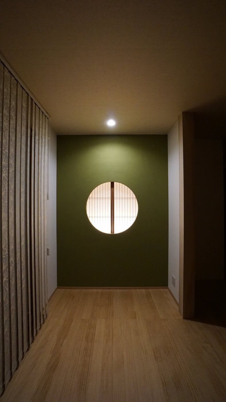 丸開口と障子+間接照明部分