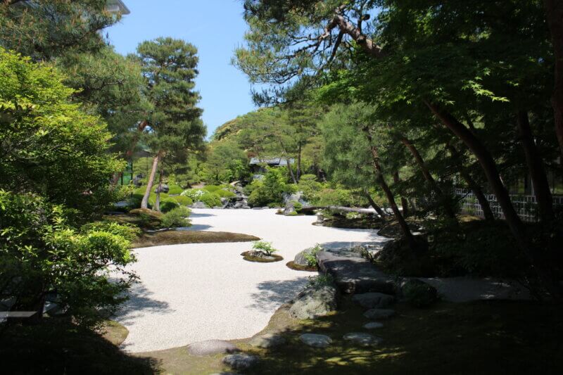 苔の緑と白砂の白との対比が美しく、