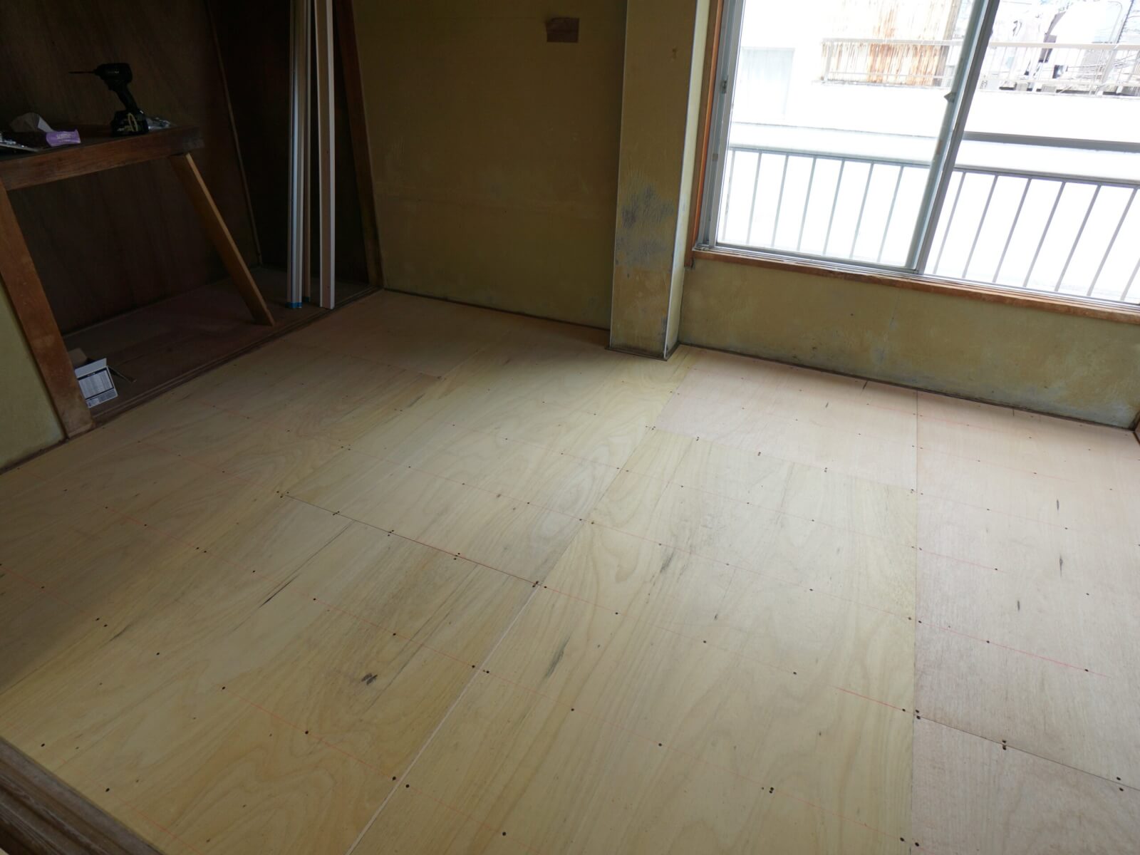 畳部屋だった場所は、床素材を変えるために