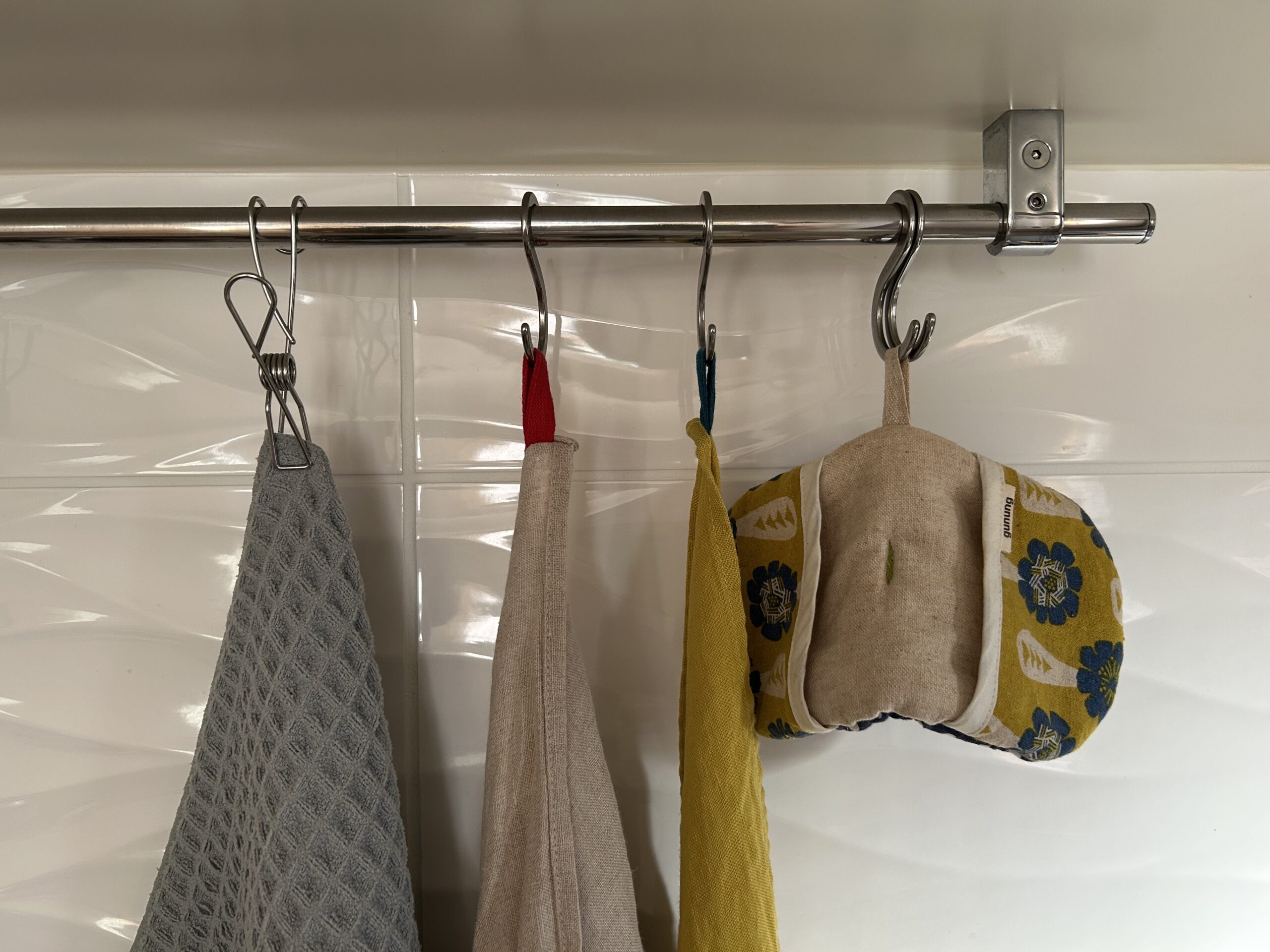 布巾など吊り下げて、さっと使えて、作業性がよいので気に入っています。