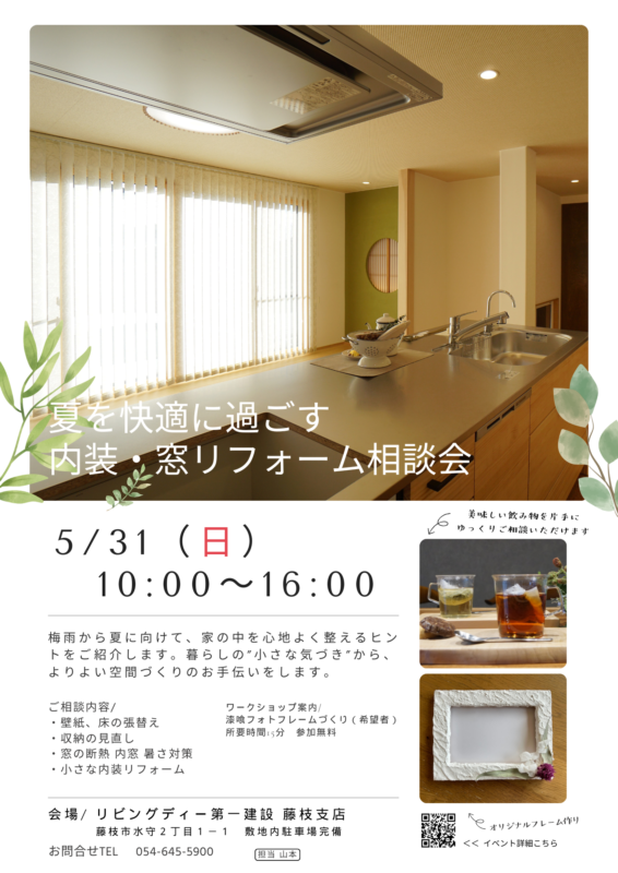 5月31日(日)10:00~16:00 夏を快適に過ごす 内装・窓リフォーム相談会 in藤枝支店