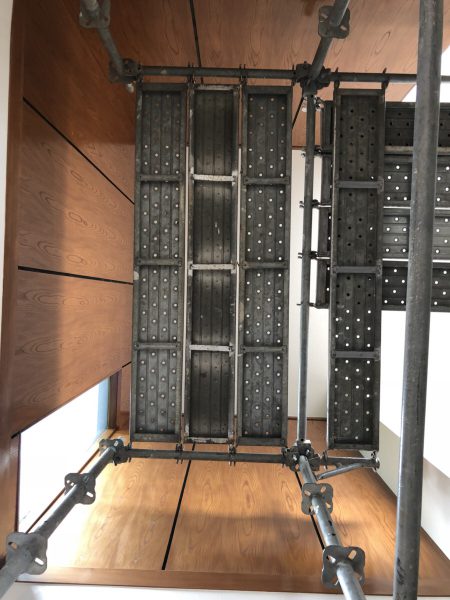 壁に張られている木の雰囲気が良い!ということで、改装せずに前の形を残した場所です。(足場がまだありますが・・)