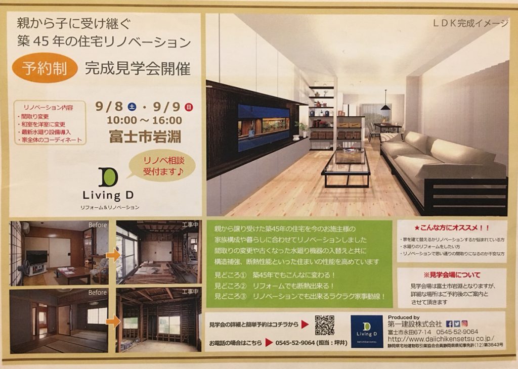 来週の土日、9/8と9/9の二日間リノベーション住宅完成見学会を開催いたします!