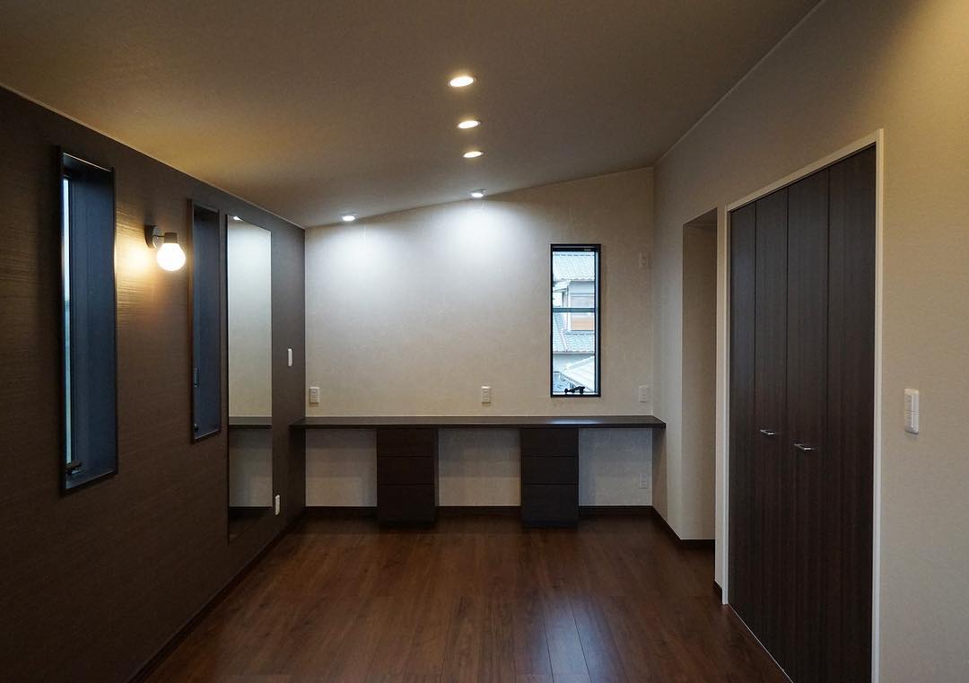 書斎兼メイクスペースも設け、ホテルの客室のような大人インテリアに仕上がりました。