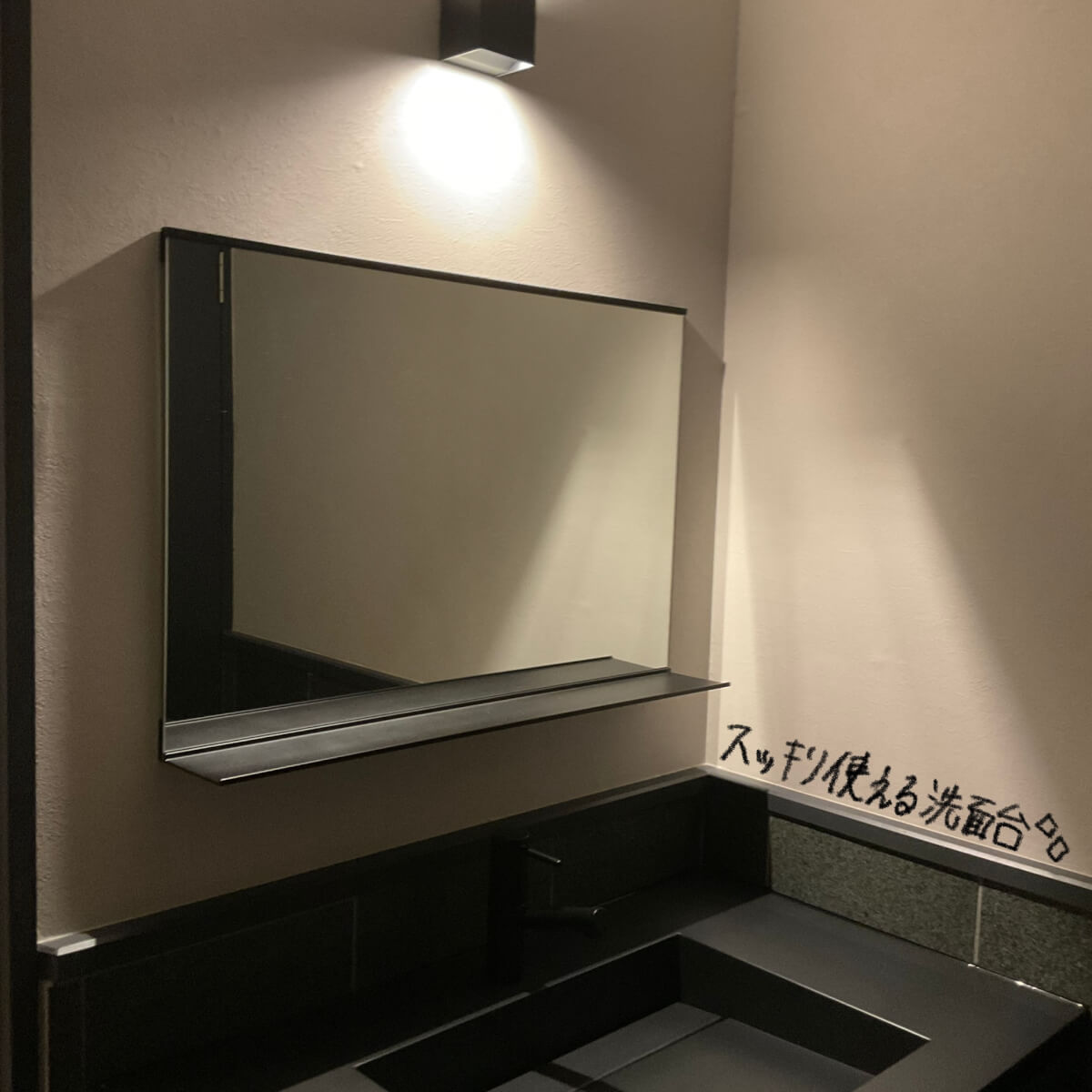 奥の壁に貼られたエコカラット(アクセントタイル)は
