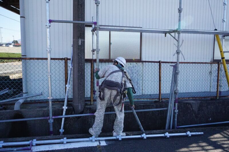 今日、倉庫リノベーションの現場に足場が組まれました!