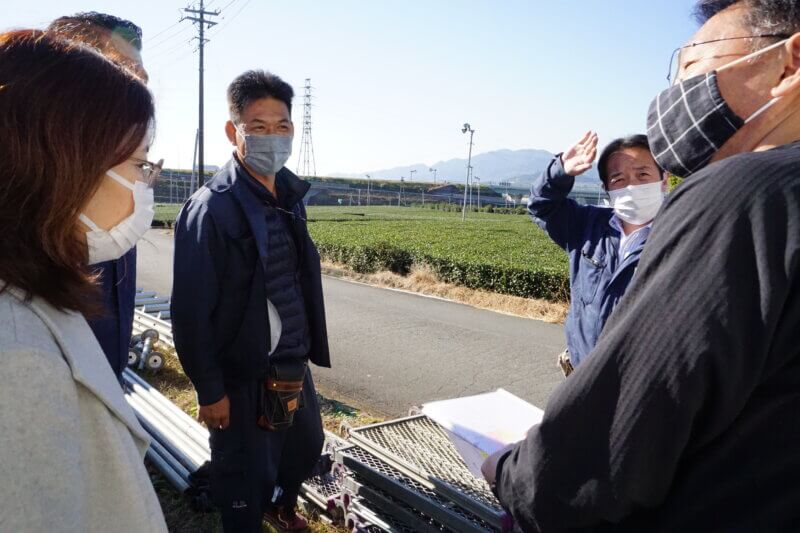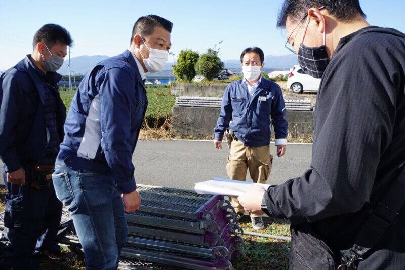 実際に現場を見ながらの打合せは、イメージがわきやすいようで、段差の高さやフェンスの位置などの話し合いが進みました!
