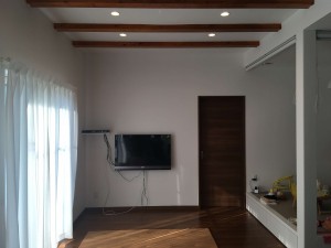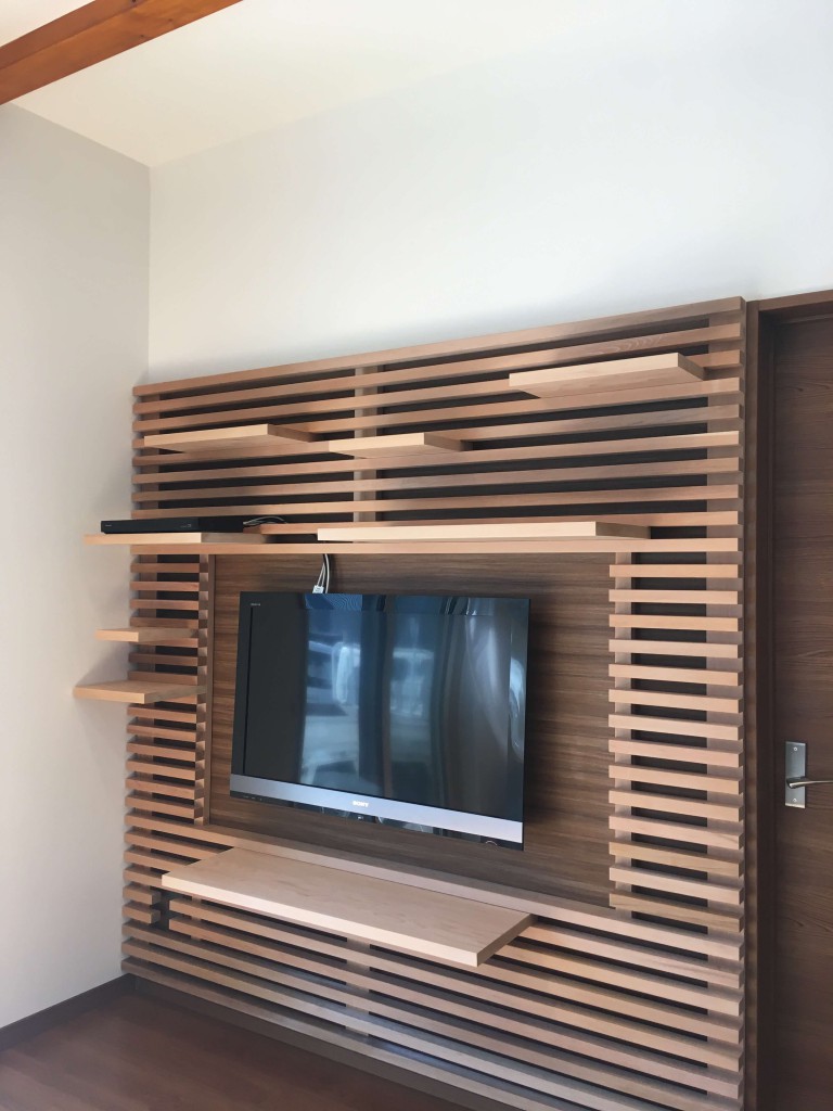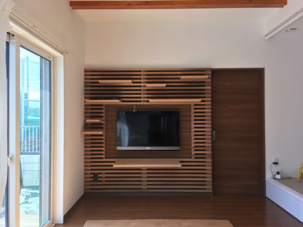 事前に下地の位置や壁掛けTVの位置やコンセントの位置を確認させて頂き加工を行いました。