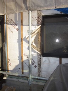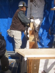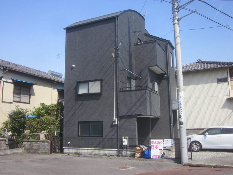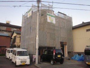 3階建ての外壁を全て剥がし、下地の木材の悪い所は取替え及び補強させて頂きました。