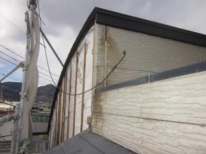 現地を確認させて頂くと、外壁の反りやコーキングの切れの劣化による剥がれ等があり補修を掛けるよりも張り替えた方が良いとの判断をさせて頂きました。