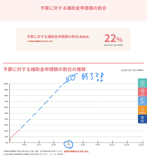 7月31には補助金がなくなってしまいそうです。(あくまで同じ比率で増えていった場合です。)