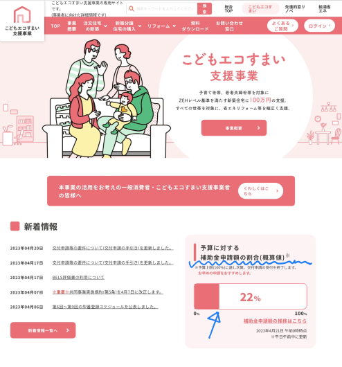 先日のブログにて紹介しましたこどもエコすまい支援事業補助金の申し込みが一日平均1%の割合で増えています。