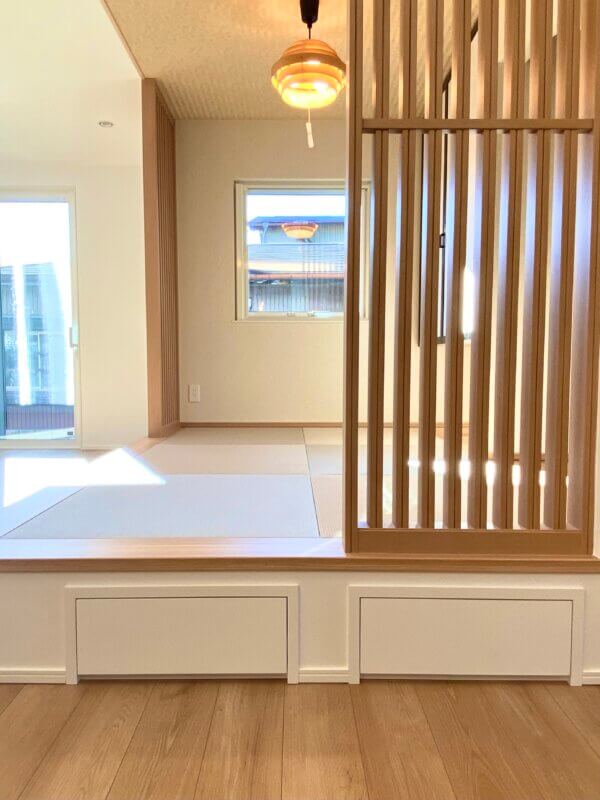 ヌックスペース、小上がり畳スペース、家事ラク動線、造作洗面