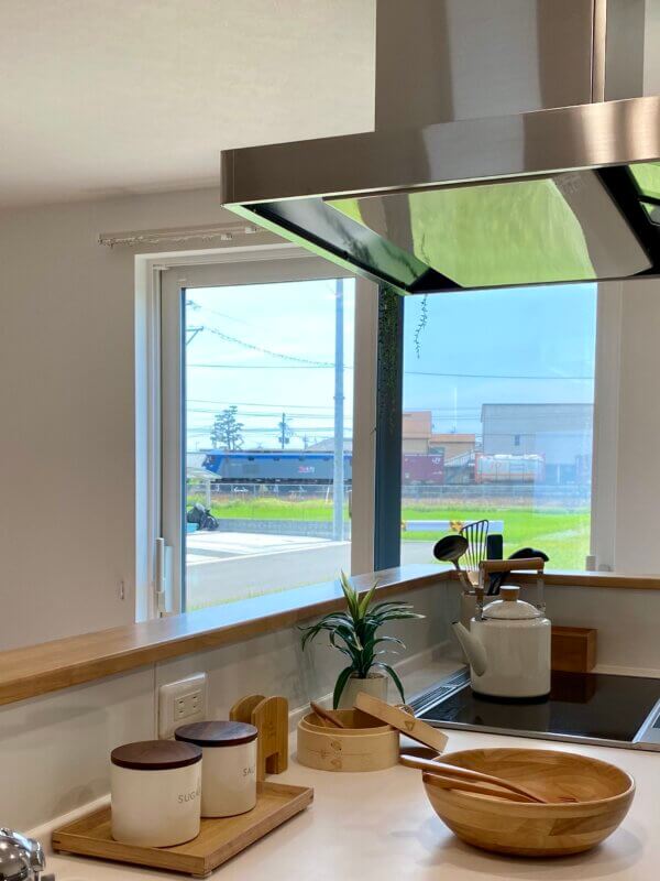 今回はキッチンから電車が見えるお家の紹介です。電車が好きなお子さんや撮り鉄の方には毎日楽しく過ごせそうです。ただ線路が近いと電車の音が気になりますね。ご安心ください!トリプルガラス樹脂サッシが標準装備のお家です。『トリプルガラス樹脂サッシ』は断熱性能に優れているだけでなく防音効果にも優れているんです!こちらをクリック → IMG_2738実際見学会場で一日過ごしましたが電車の音は全く気になりませんでした。しかもエアコン一台で1階部分すべてが快適な温度で保たれていますので猛暑の夏も安心快適に過ごせます。こちらのお家は8月25日まで予約制で見学が可能です。是非ご体感ください こちらをクリック↓