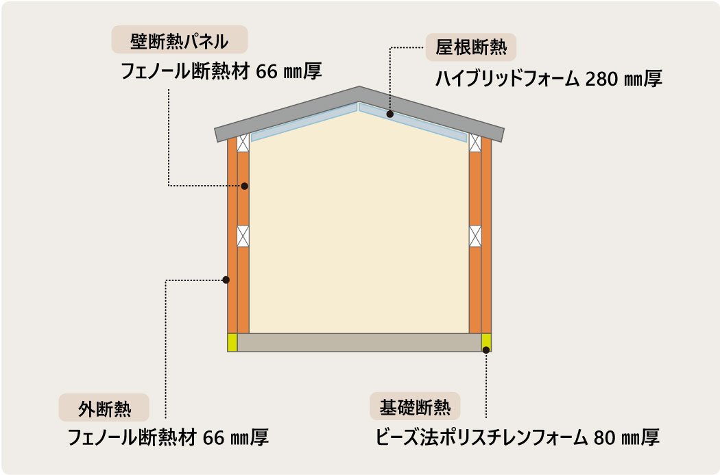 これだけ厚い断熱材で建物の外周部が覆われていれば