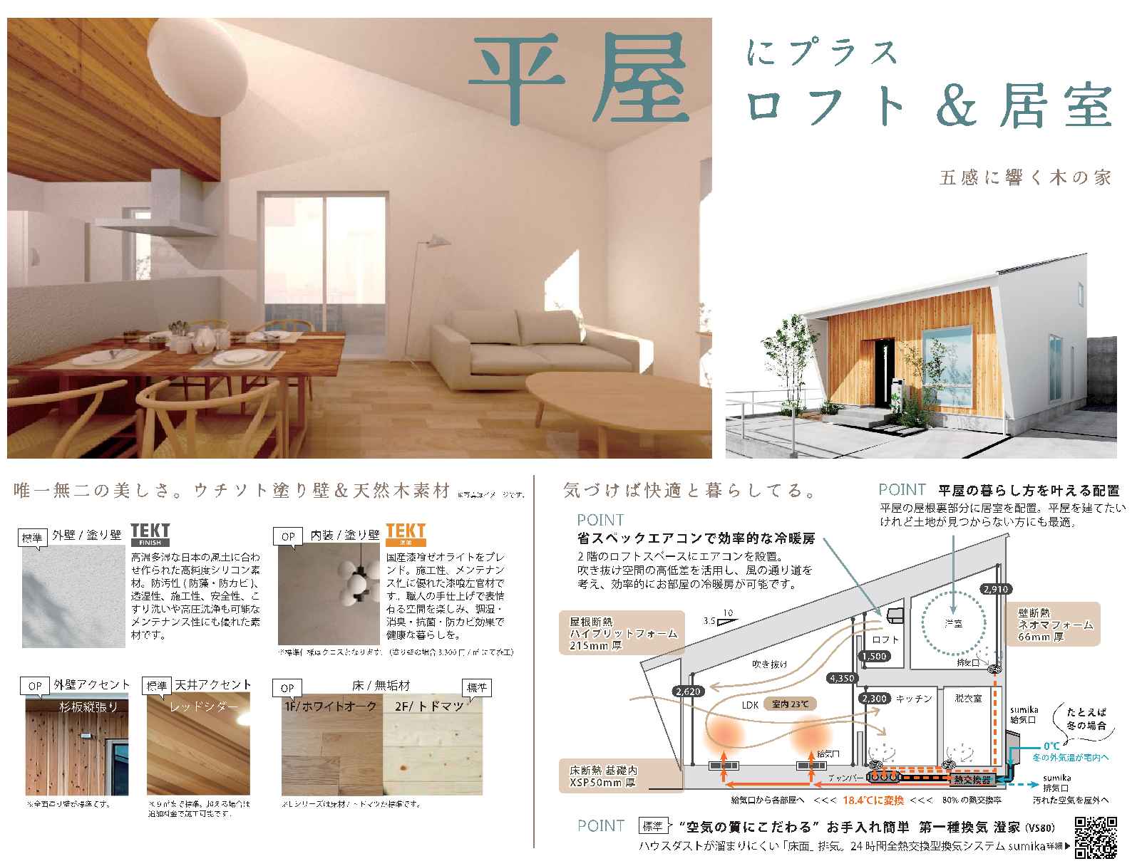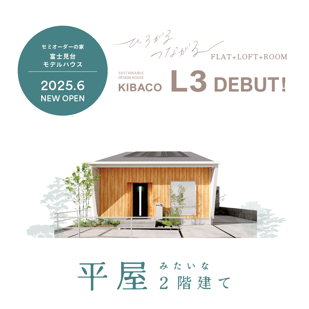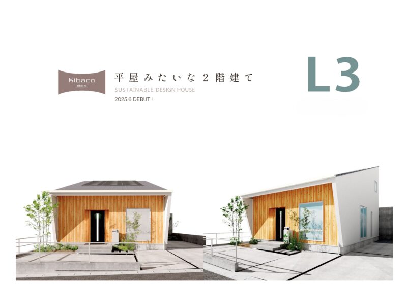 高性能セミオーダー住宅KIBACOに新しいしリースが加わりました!平屋みたいな2階建てL3です。平屋にプラスロフト&居室のある住まいです。2025年6月OPEN予定のモデルハウスプラン L3の標準仕様がすごいです。【標準仕様】◎高性能トリプルガラス樹脂窓◎高性能断熱材ネオマフォーム◎耐震等級3◎断熱等性能等級6◎気密測定C値0.5㎠/㎡以下◎外壁材 塗り壁◎内装床天然木トドマツ◎第一種24時間全熱交換型換気システム 澄家 ↑(上記はモデルハウスOP仕様が含まれます) 性能は後から直すことが難しいだからこそ初めからしっかり標準仕様で備えています! 高性能でコストパフォーマンスに優れたKIBACO L3是非ご検討してみてください。資料請求はこちら↓カタログ請求 詳しく話を聞きたい方はこちらクリック↓