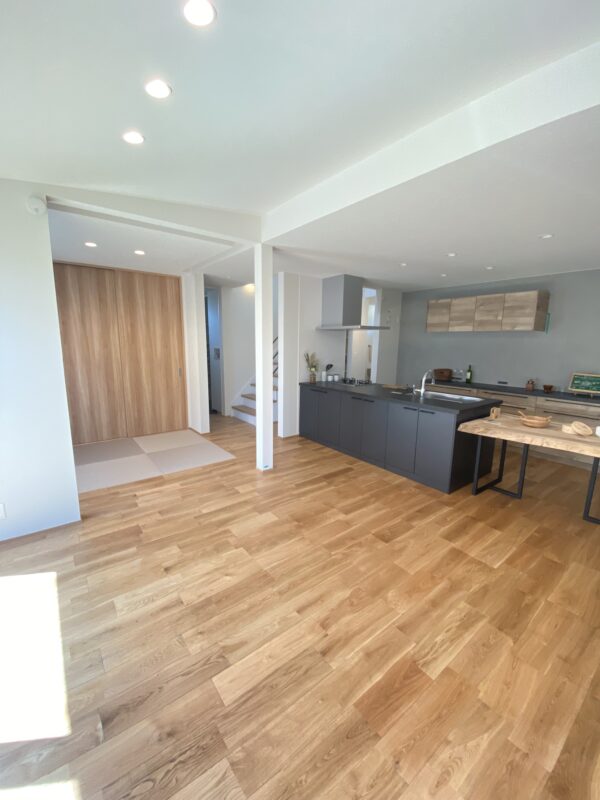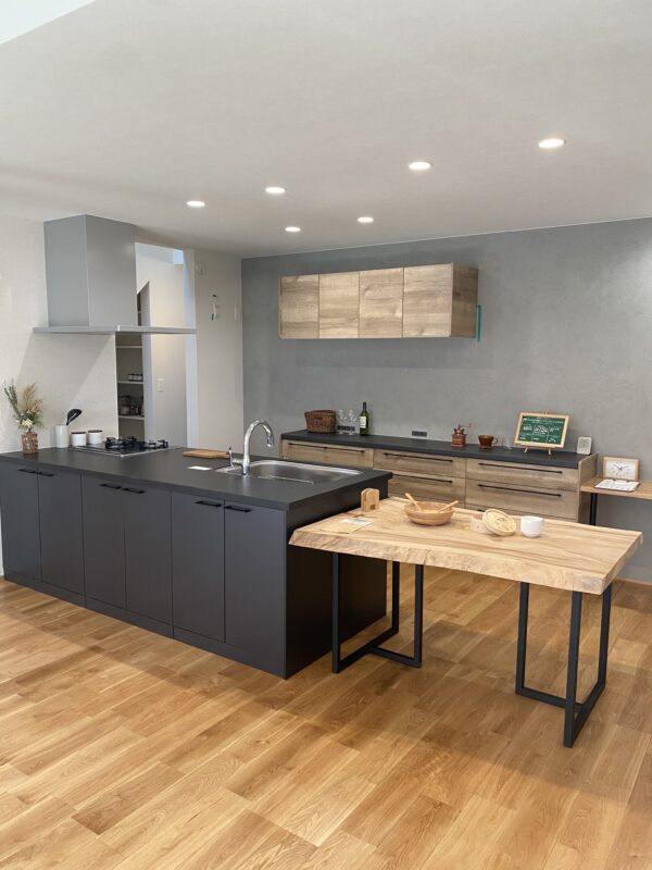 対面キッチンと違い横の動きで配膳できるので使いやすい!