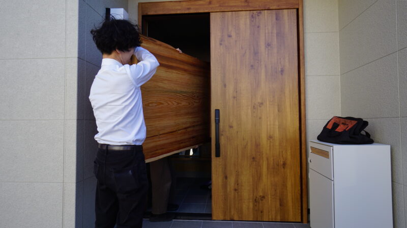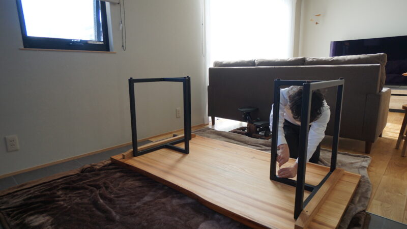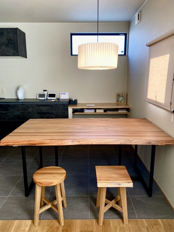 今日はハウスオーナー様のお宅に待ちに待った一枚板ダイニングテーブルを納品にお伺いいたしました!Y様が選んだ材種は奈良杉少し赤みがある木目がきれいな板でした2人がかりでゆっくり慎重に搬入アイアンの脚を取り付けて設置完了!塗装して仕上がった板は深みがある色合いで内装と照明器具との相性もばっちりです!Y様、唯一無二のテーブルとたくさんの豊かな時間をお過ごしください!カットした材料で作成した丸と四角のスツールもよろしくお願いします。一枚板テーブルはリビングディー藤枝支店事務所にて販売展示中です。 一枚いかがでしょうか😊オーダー住宅 HIBIKIプレミアムの家 見学予約受付中