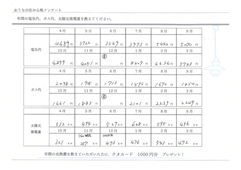 後ほど頂いた住み心地アンケートを頂いて、