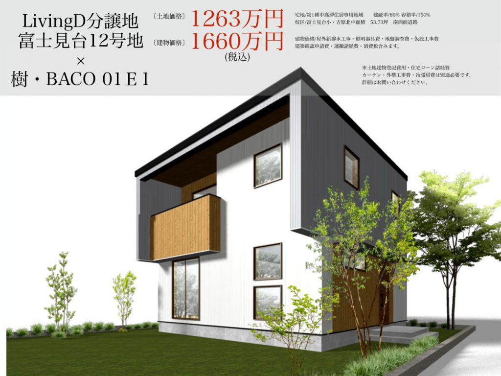今回は日当たり良好!富士見台分譲地に樹BACO01を建てた場合の参考プランのご紹介です。