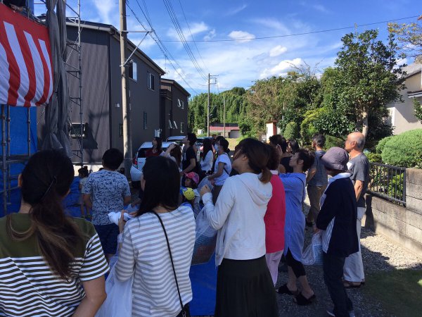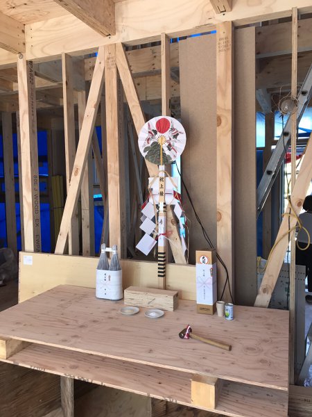 こんにちは澤脇です。今日は素晴らしい秋晴れ。富士山もとてもきれいに見えました!鳥も気持ちよさそうに飛んでいます!そんな秋晴れの中、富士宮市で上棟式とおもち投げを行いました!幣束(へいそく)といいます。↑↑↑記念にお客様に最後のピンを打ち込んでいただきました!一般的な集成材と違いLVLの構造体を使っていますので少し硬かったかもしれません!強靭な構造躯体LVLの詳しい内容はこちら耐震等級最高等級の長期優良認定住宅です!ピンうち式の後はお餅投げを行いました。近隣の皆様がたくさん集まって頂き、楽しくおもちやお菓子をひろって頂きました。 H様おめでとうございます! 長期優良住宅、高性能の家は金利が安くなる等お得な情報満載ゼミこれから迎える冬でも寒さ知らずの家を体験しよう!今回の上棟したお宅は2世帯住宅でした。楽しく暮らす2世帯のコツを知りたい方はコチラ!