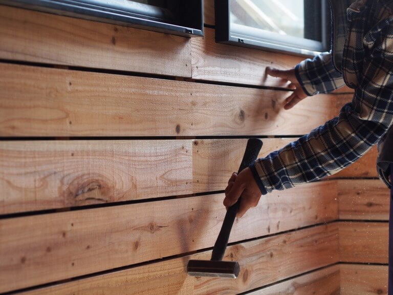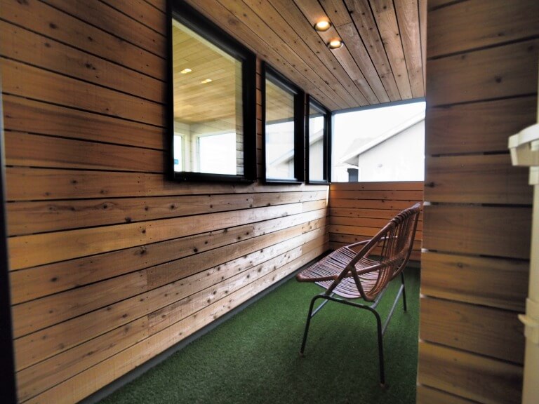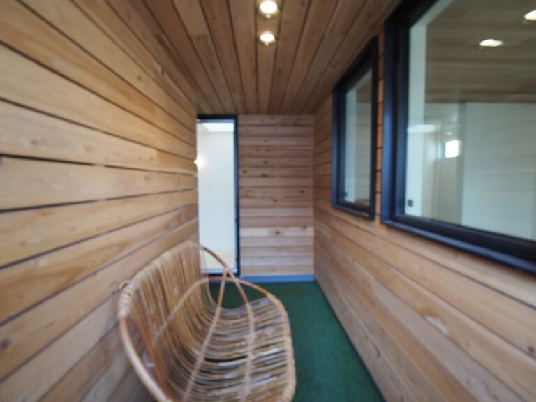 壁と天井を屋久島地杉で囲い人工芝を敷いた