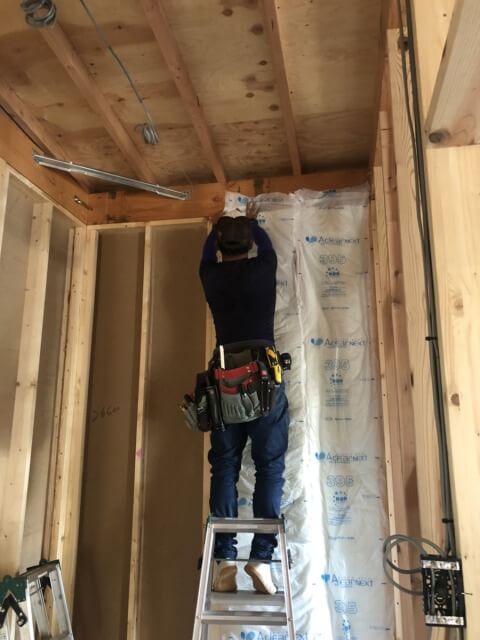 断熱材を貼っている最中でした。