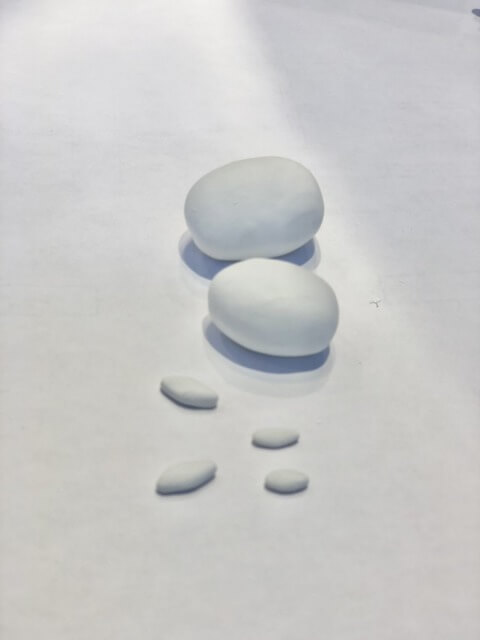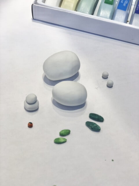 まず紙粘土で体と耳を丸めます