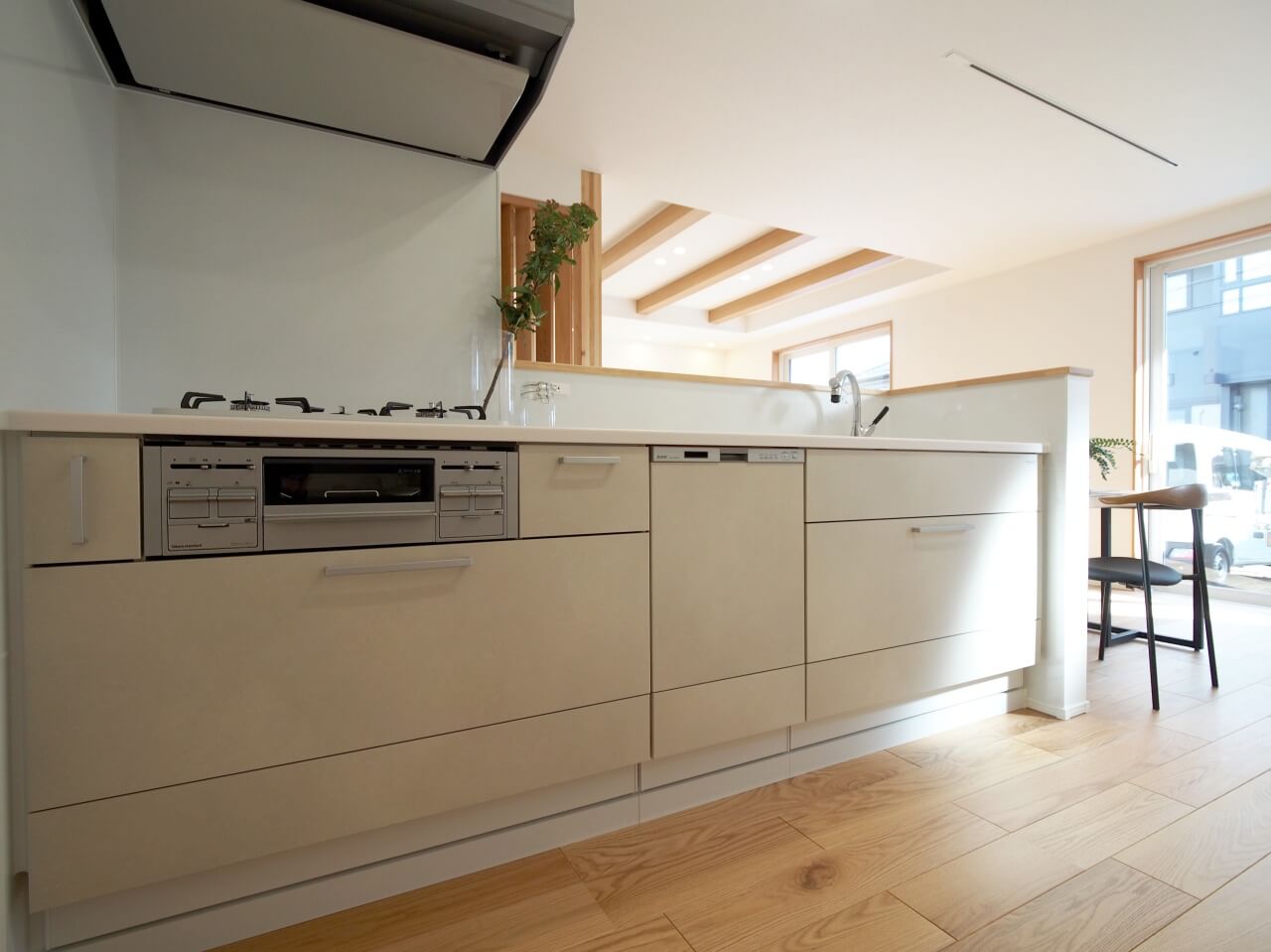 扉の面材には、柔らかなベージュをご選定いただきました。