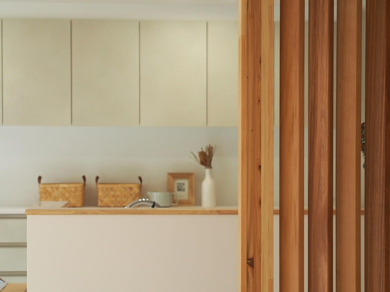 扉の面材には、柔らかなベージュをご選定いただきました。