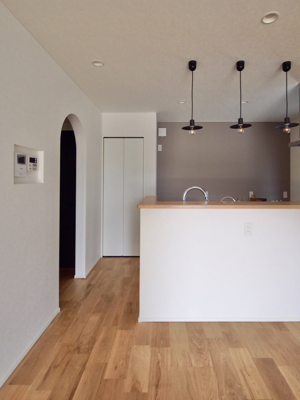 <人気のグレーをキッチン背面へ>