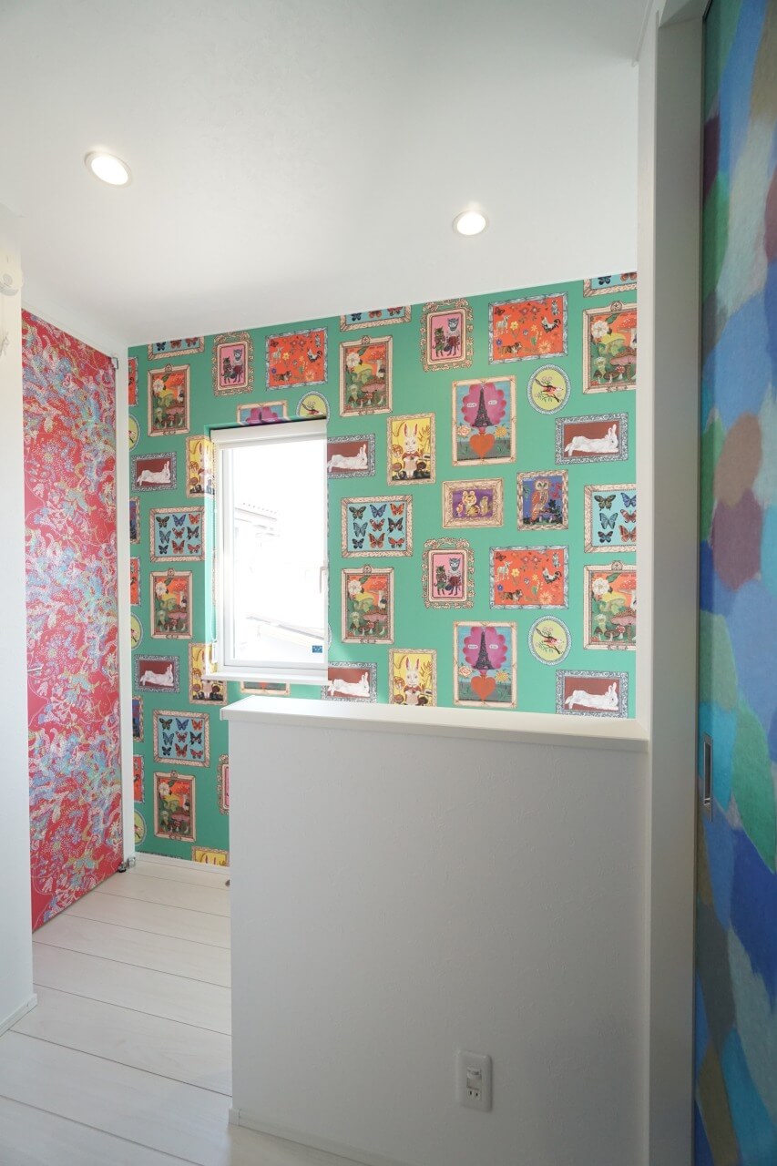 <海外風クロスを廊下へ>
