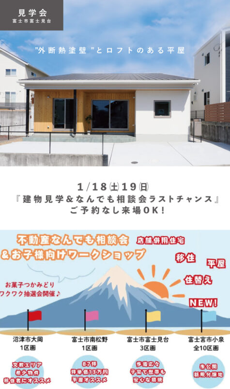 「外壁断熱塗壁とロフトのある平屋の見学会&相談会イベント」
