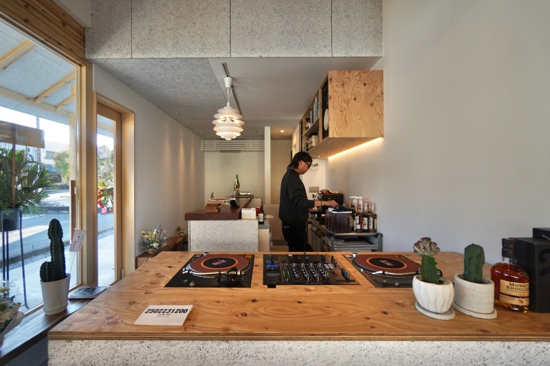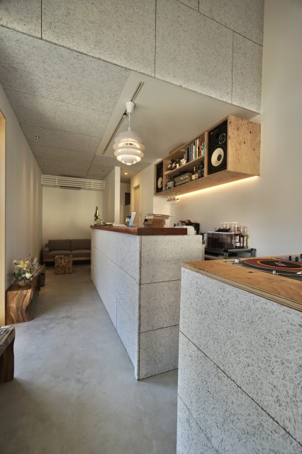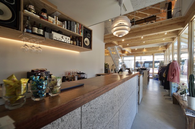 奥に進むと一枚板で作られた印象的なカウンターが。