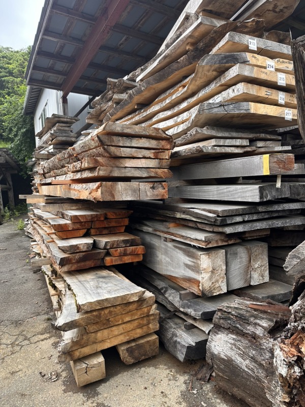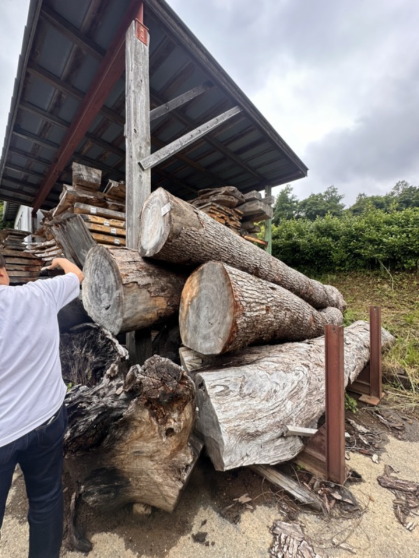 外にはどーんと木をカットしたままの材料が置かれていました。