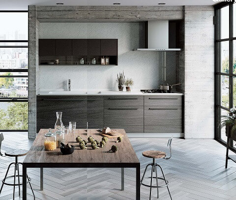 キッチンの写真はグレーストーンの